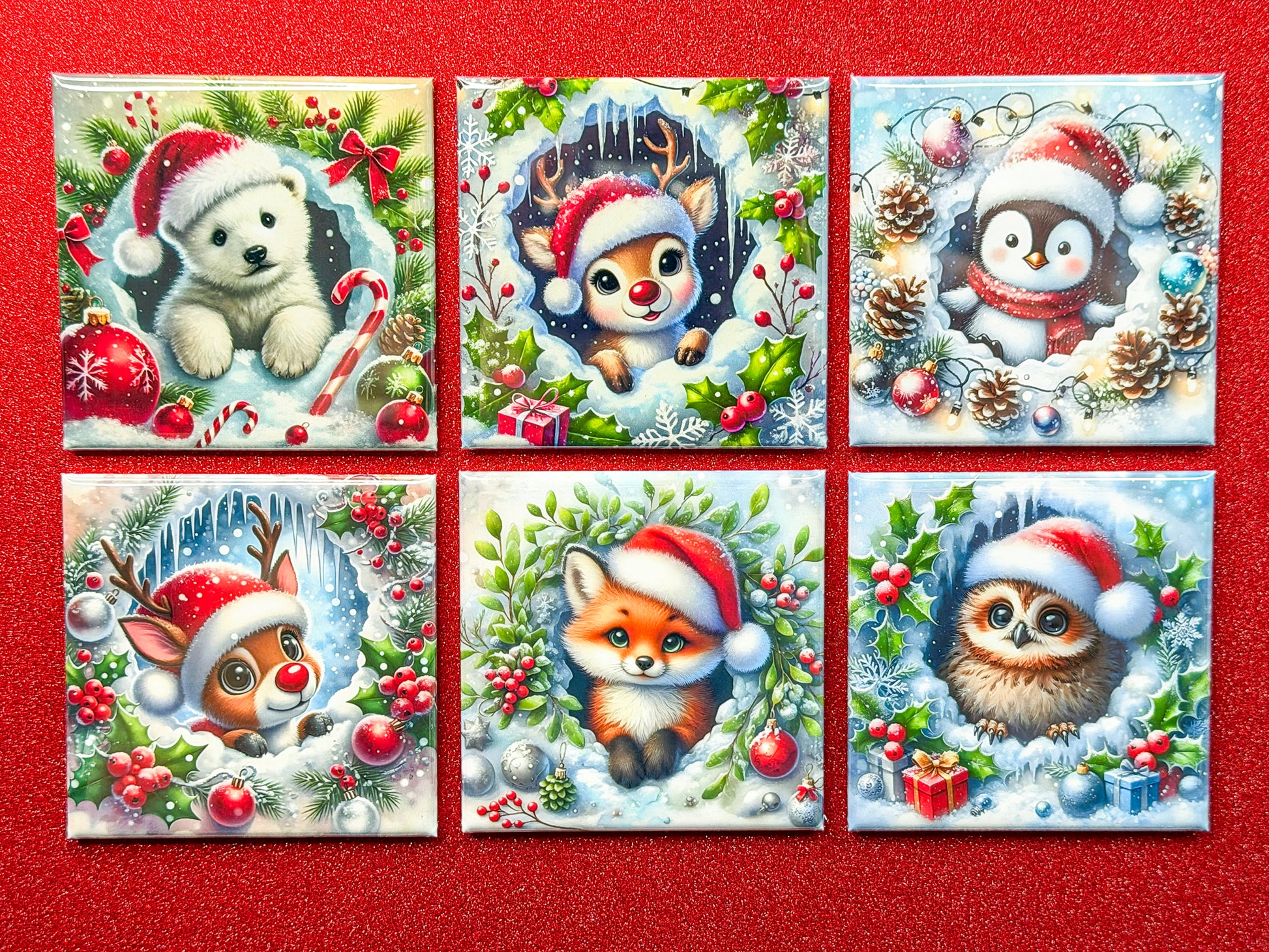 From the curious polar bear to the playful fox and the tiniest owl bundled in holiday cheer, each magnet adds a touch of whimsy and warmth to your fridge or workspace. They’re perfect for holding notes, photos, and reminders, while adding a bit of seasonal joy to every glance.